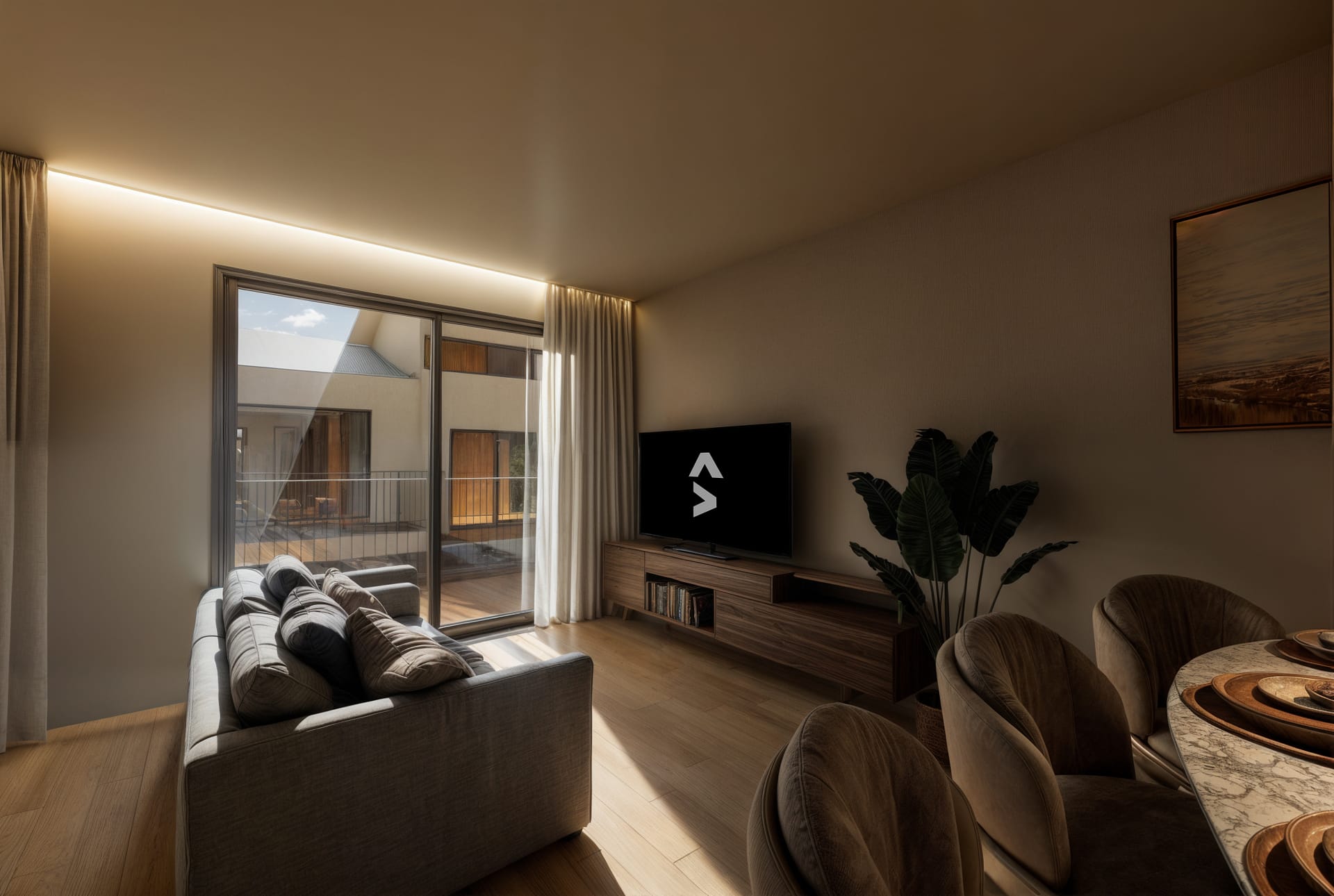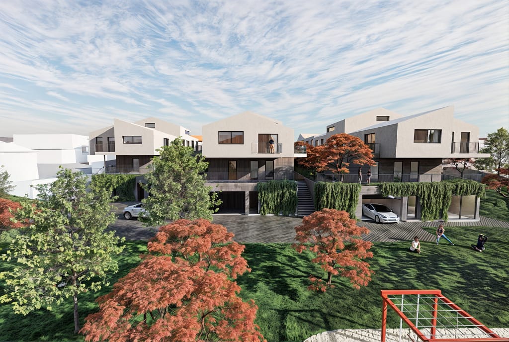 Este conjunto habitacional reflete a arquitetura como a arte de esculpir espaços para a vida, valorizando a topografia, a luz natural, a sustentabilidade e a convivência equilibrada entre espaços coletivos e privados.