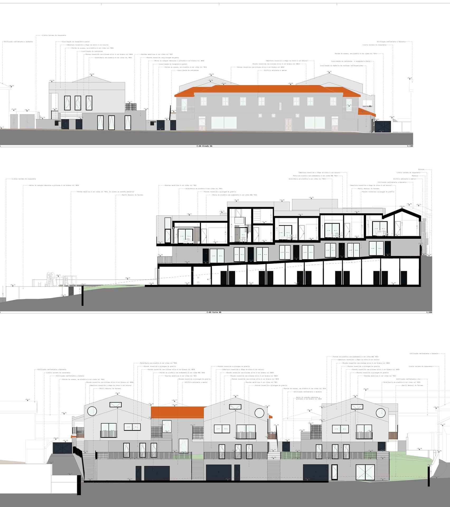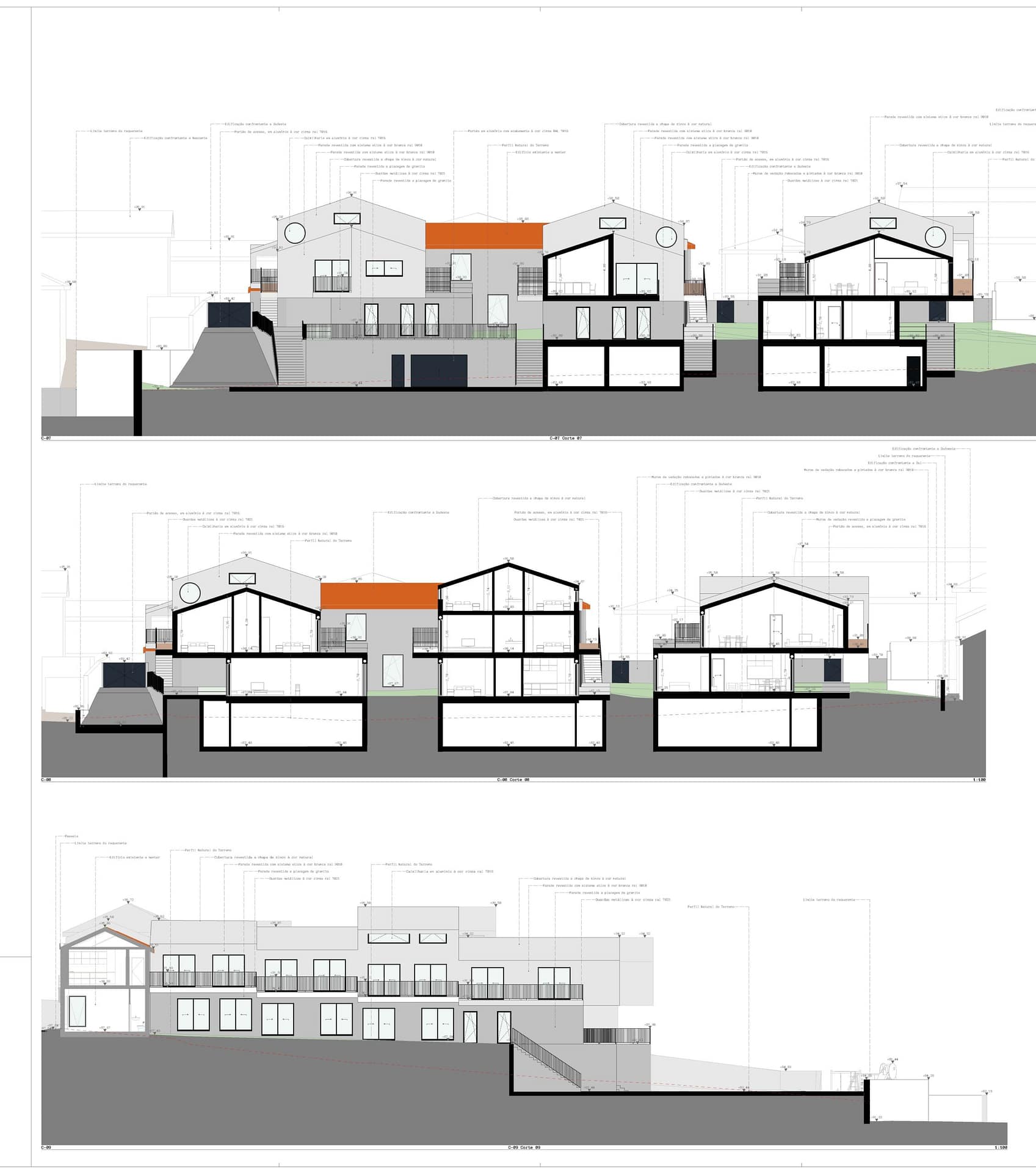 O projeto consiste num conjunto de habitações coletivas organizadas em vários blocos regulares, com cobertura inclinada de duas águas, conferindo dinamismo à arquitetura. A edificação se desenvolve em três volumes que avançam para o interior do terreno, garantindo maior privacidade e intimidade aos moradores, ao mesmo tempo em que respeita e acompanha a linguagem da frente urbana existente, preservando o edifício pré-existente com intervenções pontuais e discretas.